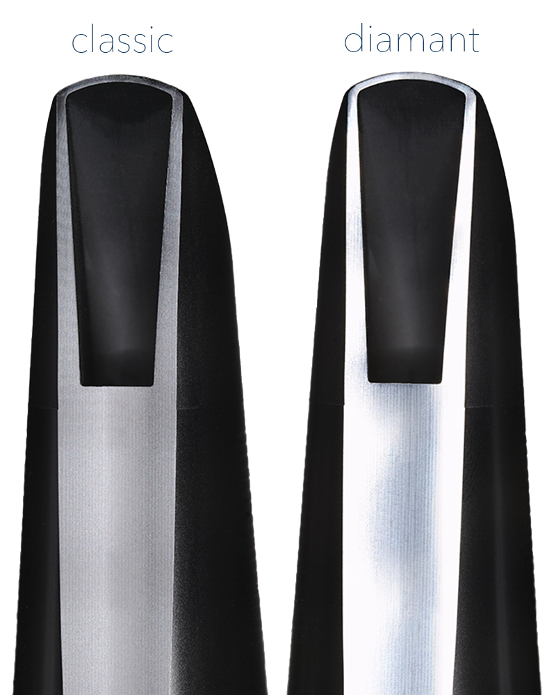 Der Unterschied ist nicht nur optisch erkennbar, wenn das Licht auf der spiegelglatten Fläche des Mundstücks reflektiert wird, sondern auch fühlbar, wenn Du mit dem Finger über den Tisch des Mundstücks gleitest.